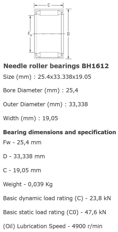 NSK BH1620 volrollig naaldlager in -engelse- inch maten.