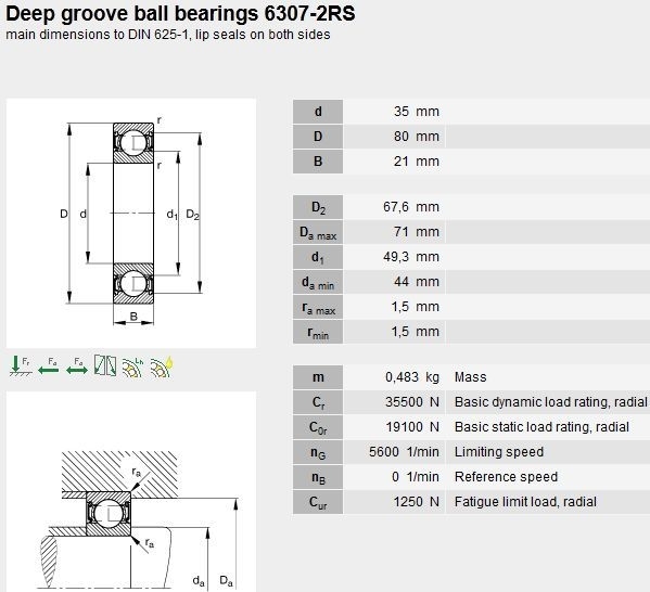 SKF 6307-2RS/C3 groefkogellager met spatwaterdichte rubber afdichtingen.