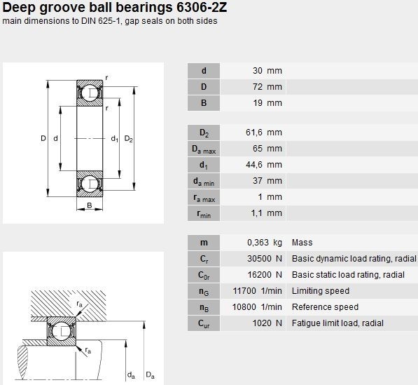 NSK 6306-2Z groefkogellager met metalen stofdichte afdichtingen.