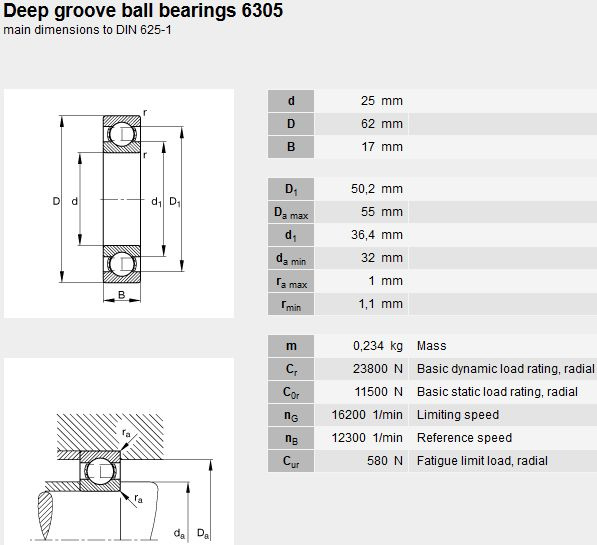 NSK 6305 open groefkogellager zonder afdichtingen.