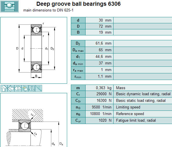 SKF 6306M groefkogellager met messing lagerkooi zonder afdichtingen.