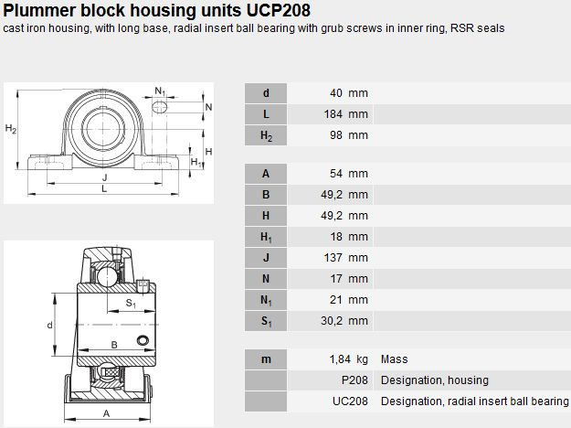 PTi UCP208 spanlagerblok met insertlager UC208.