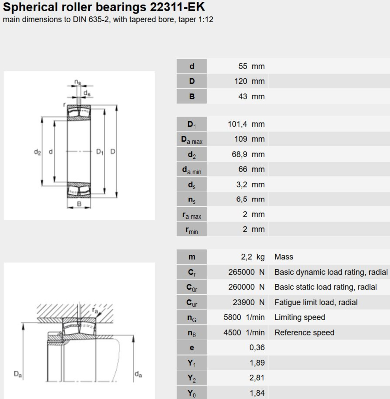 Afmetingen 22311 tonlagers: