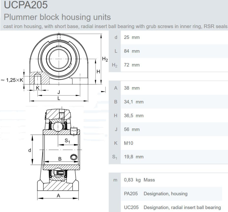 - Breedte lagerblok L=84mm