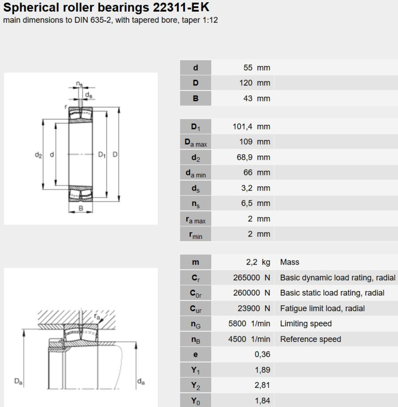 FAG 22311-E1-XLK-T41A dubbelrijig tonlager met stalen lagerkooi en conische boring.
